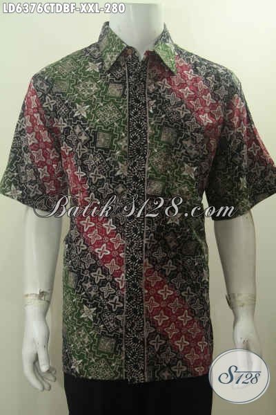 Batik Hem Halus Ukuran Jumbo, Kemeja Batik Lengan Pendek Proses Cap Tulis Berbahan Kain Dolby Model Lengan Pendek Motif Mewah Proses Cap Tulis Exclusive Buat Lelaki Gemuk [LD6376CTDBF-XXL]
