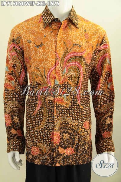 Batik Hem Jumbo Bahan Sutra, Pakaian Batik Elegan Dan Mewah Lengan Panjang Full Furing Motif Mewah Proses Tulis Tangan Asli Harga Di Atas 1 Juta [LP7150SUWTF-XXL]