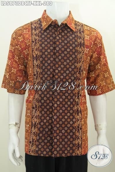 Batik Hem Jumbo Full Furing Kwalitas Istimewa, Sedia Produk Baju Batik Lengan Pendek Mewah Halus Bahan Kain Doby Kwalitas Istimewa Motif Terkini Daleman Full Furing Khusus Untuk Cowok Gemuk [LD5873DBCTF-XXL]