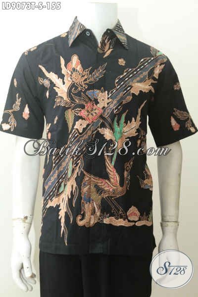 Batik Hem Keren Dasar Hitam, Busana Batik Lelaki Muda Lengan Pendek Motif Unik Proses Tulis Hanya 100 Ribuan [LD9073T-S]