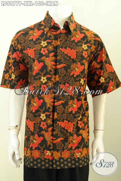 Batik Hem Keren Motif Ikan Ukuran 3L, Baju Batik Solo Asli Model Lengan Pendek Desain Terbaru 2017, Cowok Gemuk Penampilan Lebih Gagah Dan Modis [LD9877P-XXL]