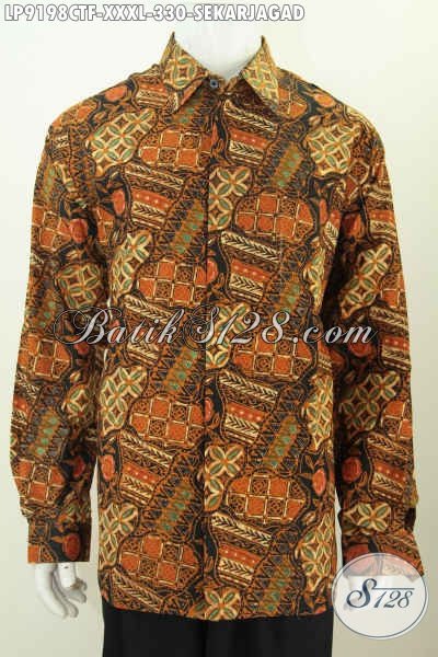 Batik Hem Kerja Mewah Full Furing Harga Terjangkau, Pakaian Batik Klasik Cap Tulis Motif Sekarjagad Lengan Panjang, Pas Buat Acara Resmi [LP9198CTF-XXXL]