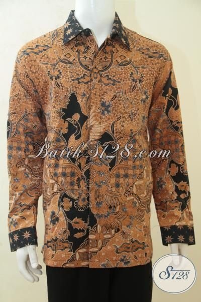 Batik Hem Kerja Motif Klasik Warna Coklat, Kemeja Batik Elegan Full Furing Bahan Dobby Halus Langganan Executive Muda Dan Dewasa [LP4230BTDF-XL]