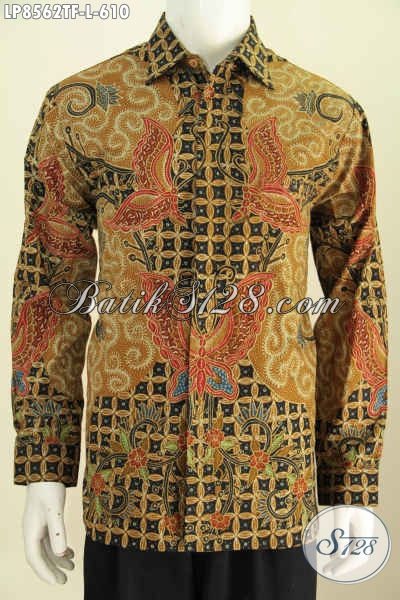 Batik Hem Klasik Elegan Dengan Kombinasi Motif Kupu, Pakaian Batik Solo Tulis Asli Model Lengan Panjang Full Furing, Pas Untuk Rapat [LP8562TF-L]