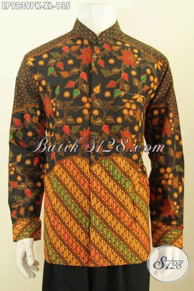 Batik Hem Koko Motif Kombinasi, Pakaian Batik Jawa Etnik Lengan Panjang Desan Kerah Shanghai Bikin Penampilan Lebih Berkelas [LP9239PK-XL]