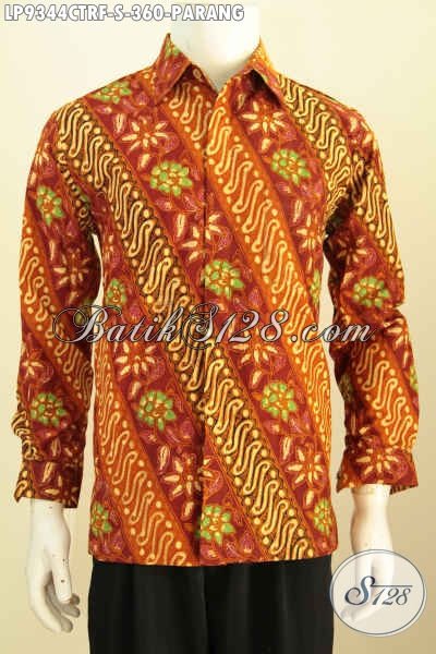 Batik Hem Lengan Panjang Motif Parang, Baju Batik Klasik Solo Proses Cap Tulis, Bisa Buat Kondangan Dan Rapat Daleman Full Furing [LP9344CTRF-S]