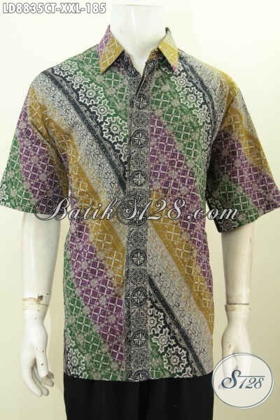 Batik Hem Lengan Pendek Istimewa Istimewa Untuk Lelaki Gemuk, Baju Batik 3L Motif Terbaru Pria Gemuk Terlihat Gagah Dan Tampan Proses Cap Tulis [LD8835CT-XXL]