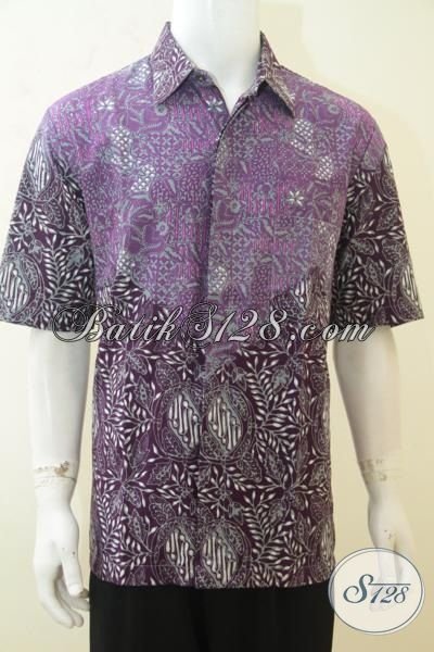 Batik Hem Lengan Pendek Warna Ungu, Batik Solo Kwalitas Premium Harga Terjangkau, Batik Cap Tulis Motif Unik Dan Berkelas [LD4170CT-XL]