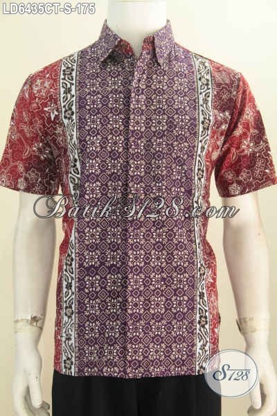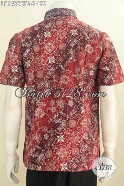 Batik Hem Modis Warna Merah, Baju Batik Keren Bahan Adem Motif Kombinasi Proses Cap Tulis, Busana Batik Solo Yang Bikin Kawula Muda Tampil Beda Dan Gaya [LD6435CT-S]