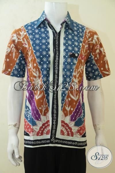 Batik Hem Motif Matahari Dengan Kombinasi Warna Yang Lebih Modern, Baju Batik Tulis Lengan Pendek Membuat Cowok Tampil Tampan Maksimal [LD4200T-M]
