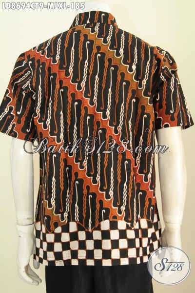 Batik Hem Paling Keren Saat Ini, Busana Batik Solo Elegan Modern Klasik Lengan Pendek Bahan Adem Proses Cap Tulis Untuk Penampilan Lebih Gagah Berkarakter [LD8694CT-M , L , XL]