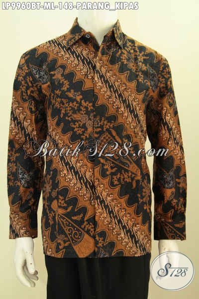 Batik Hem Pria Lengan Panjang Motif Parang Kipas, Kemeja Batik Kombinasi Tulis Buatan Solo Asli, Modis Buat Kondangan Dan Kerja Kantoran [LP9960BT-M]