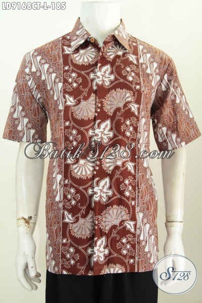 Batik Hem Pria Size L, Pakaian Batik Solo Lengan Pendek Berkelas Motif Modern Klasik Cap Tulis, Pria Terlihat Lebih Berkelas [LD9168CT-L]