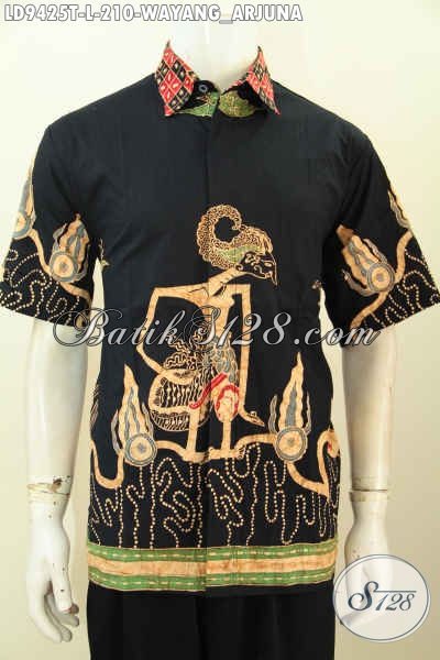 Batik Hem Pria Terkini, Pakaian Batik Lengan Pendek Motif Wayang Arjuna Proses Tulis, Tampil Tampan Maksimal [LD9425T-L]