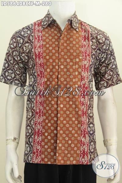 Batik Hem Seragam Kerja Lengan Pendek Full Furing Tampil Lebih Mewah, Pakaian Batik Motif Kombinasi Proses Cap Tulis Berbahan Kain Doby Lebih Nyaman Di Pakai [LD5864DBCTF-M]