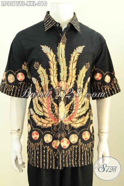 Batik Hem Solo Halus, Pakaian Batik Modis Terkini Spesial Buat Lelaki Gemuk, Baju Batik Tulis Soga Motif Trendy Warna Elegan, Penampilan Lebih Berkelas [LD9575TS-XXL]