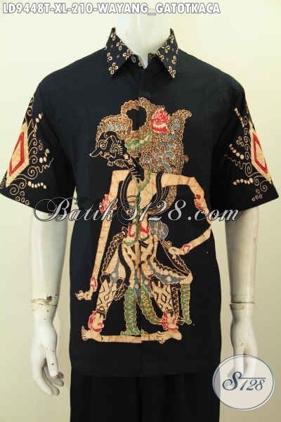 Batik Hem Solo Halus Size XL, Baju Batik Pria Dewasa Lengan Pendek Motif Wayang Gatotkaca, Penampilan Terlihat Perkasa [LD9448T-XL]