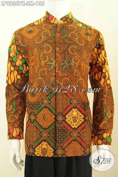 Batik Hem Solo Klasik Proses Printing, Pakaian Batik Lengan Panjang Istimewa Model Koko Kerah Shanghai Yang Cocok Buat Kerja Dan Rapat, Tampil Gagah Berkelas [LP9235PK-S , M]