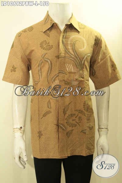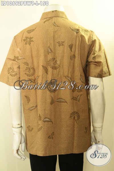 Batik Hem Solo Lengan Pendek Size L, Baju Batik Kerja Pria Lengan Pendek Motif Elegan Klasik Printing Cabut Harga 150K [LD10692PBW-L]