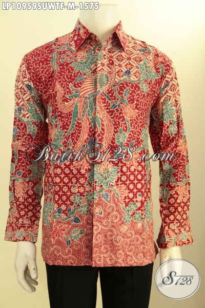 Batik Hem Super Mewah Warna Merah Lengan Panjang Bahan Sutra, Kemeja Batik Tulis Asli Untuk Para Pejabat Dan Eksekutif Tampil Gagah Dan Tampan [LP10959SUWTF-M]