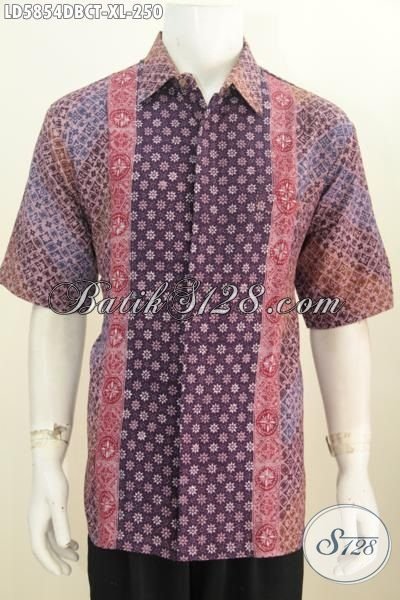 Batik Hem Trendy Untuk Lelaki Dewasa, Busana Batik Gaul Ukuran XL Bahan Kain Doby Model Lengan Pendek Tidak Pakai Furing, Baju BatikSolo Istimewa Kwalitas Mewah Harga Terjangkau [LD5854DBCT-XL]