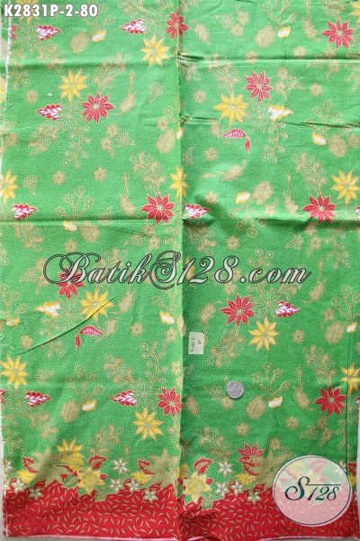 Batik Hijau Motif Bunga, Kain Batik Istimewa Buatan Solo Asli Bahan Baju Kerja Wanita Karir [K2831P-240x105cm]