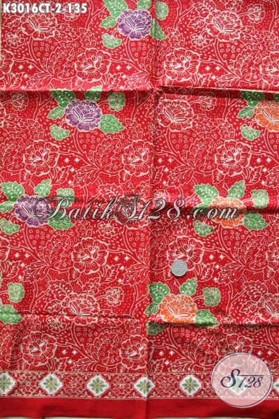 Batik Kain Bahan Baju Kerja Wanita, Batik Halus Motif Bunga Dasar Merah Proses Cap Tulis Buatan Solo Asli Hanya 135K [K3016CT-200x115cm]