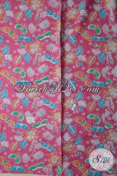 Batik Kain Bahan Pakaian Wanita Muda Karyawati Kantoran, Batik Kain Warna Pink Motif Kupu-KupuTampil Lebih Feminim Dan Stylist [K1821P-200x105cm]