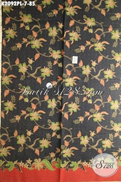 Batik Kain Buatan Solo Motif Bunga Di Jual Online, Batik Halus Proses Print Dasar Hitam Bahan Busana Elegan Dan Berkelas [K2092PL-240 x 105cm]