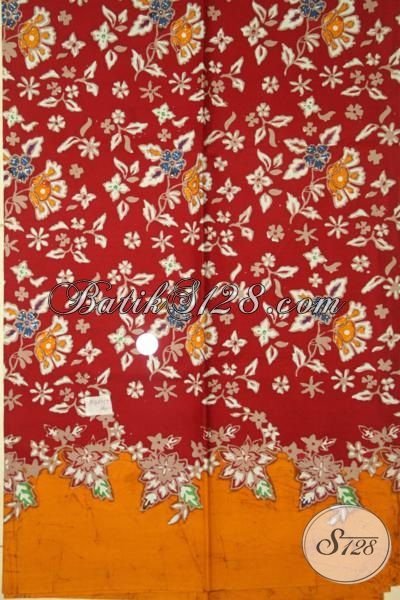 Batik Kain Cap Tulis Warna Merah Motif Bunga, Bahan Pakaian Berkelas Membuat Penampilan Lebih Menawan [K1863CT-200x110cm]