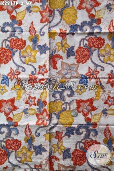 Batik Kain Dasar Putih Motif Bunga-Bunga Proses Printing, Batik Jawa Tengah Halus Bahan Pakaian Wanita Muda Dan Dewasa Untuk Terlihat Lebih Stylish Dan Elegan [K2217P-200 x 110cm]