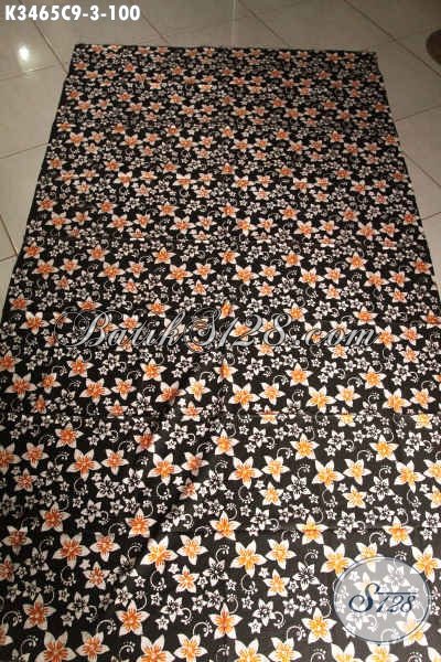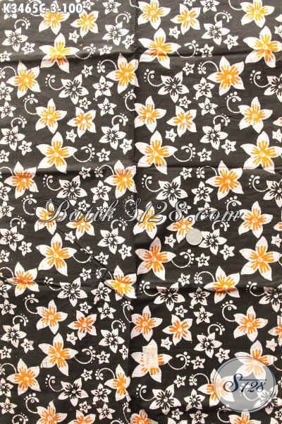 Batik Kain Halus Dasar Hitam Nan Elegan Berpadu Motif Bunga Proses Cap, Cocok Banget Untuk Busana Kerja Dan Santai Perempuan Masa Kini [K3465C-200x110cm]