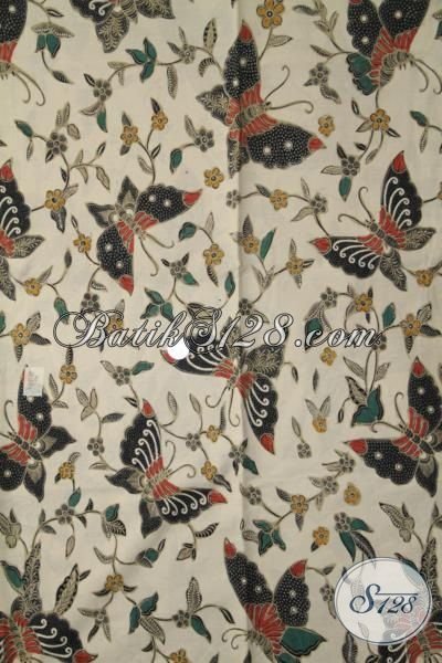 Batik Kain Halus Motif Kupu, Batik Modern Produk Pengerajin Solo Proses Kombinasi Tulis, Pas Untuk Dress Batik Yang Fashionable [K1985BT-240×110 cm]