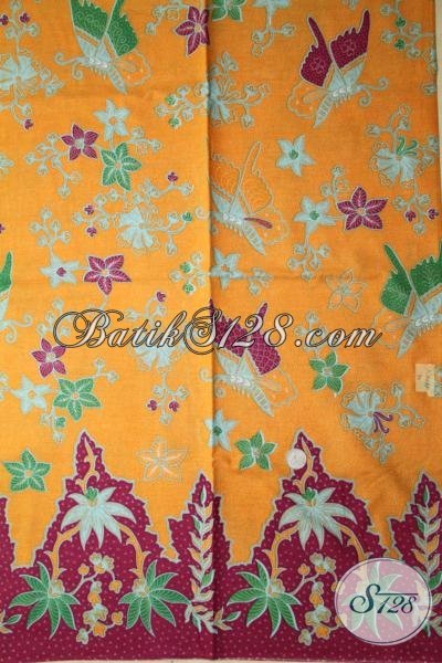 Batik Kain Jawa Warna Kuning Motif Bunga Dan Kupu, Batik Bahan Busana Modern Tampil Trendy Nan Elegan [K1619P]