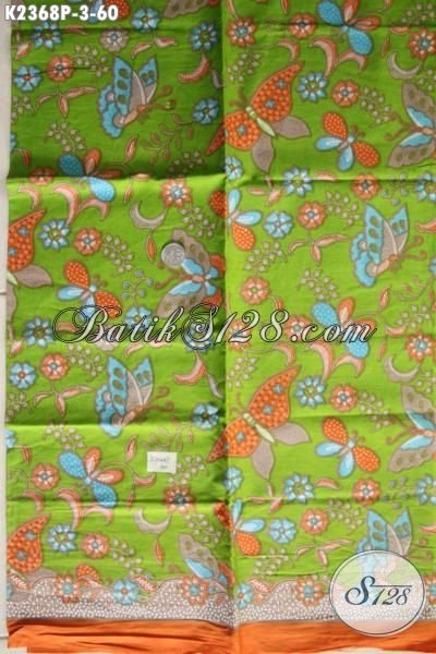 Batik Kain Modern Kwalitas Bagus Harga Sangat Terjangkau, Batik Solo Istimewa Bahan Busana Cewek Terbary Dengan Dasar Hijau Motif Bunga Dan Kupu Modis Banget Untuk Pakaian Santai [K2368P-200x110cm]