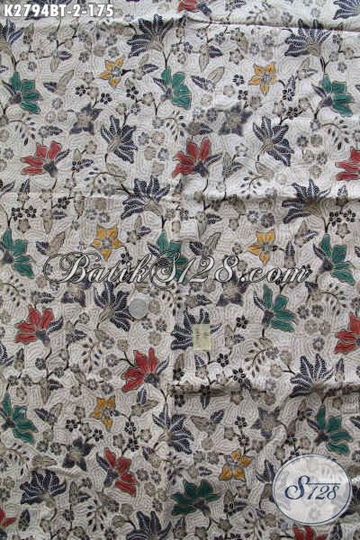 Batik Kain Motif Bunga Modis Untuk Dress Dan Blus, Batik Solo Kwalitas Bagus Proses Kombinasi Tulis 175K [K2794BT-240x110cm]