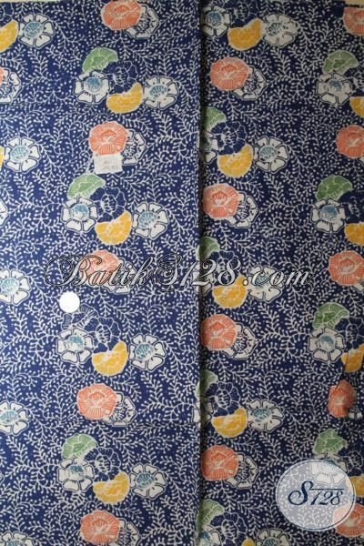 Batik Kain Murah Untuk Blus Pakaian Kerja Perempuan Muda Dan Dewasa, Batik Solo Cap Tulis Warna Biru Motif Bunga Keren Dan Berkelas [K1672CT]