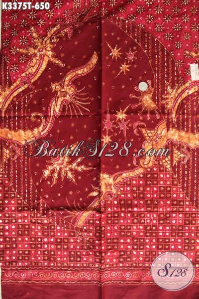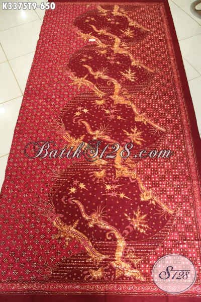 Batik Kain Premium Bahan Aneka Busana Mewah Berkelas Khas Pejabat, Batik Tulis Aslu Khas Jawa Tengah Warna Merah, Menunjang Penampilan Lebih Berkelas [K3375T-240x105cm]