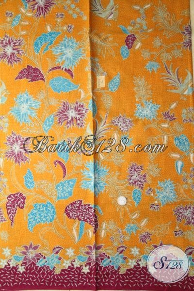 Batik Kain Terbaru Asli Produk Pengerajin Di Solo, Kain batik Print Warna Kuning Motif Bunga Cocok Untuk Dress Maupun Blus Wanita Muda Masa Kini [K1623P]