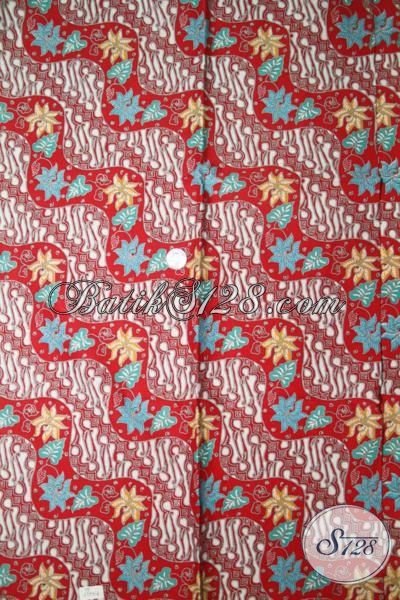 Batik Kain Warna Merah Dengan Desain Motif Yang Keren Dan Modern, Kain Batik Solo Proses Print Halus Lembut Untuk Baju Yang Berkelas [K1847P-200 x 105cm]