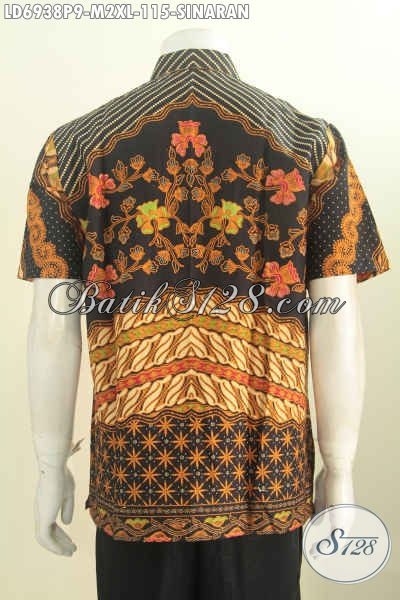 Batik Kemeja Elegan, Busana Batik Klasik Solo Motif Sinaran Lengan Pendek Untuk Kerja Dan Acara Formal Proses Printing Harga 115K [LD6938P-M , XL]