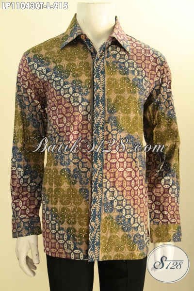 Batik Kemeja Elegan Lengan Panjang, Busana Batik Solo Istimewa Bahan Halus Motif Klasik Proses Cap Tulis Hanya 200 Ribuan, Cocok Untuk Rapat [LP11043CT-L]