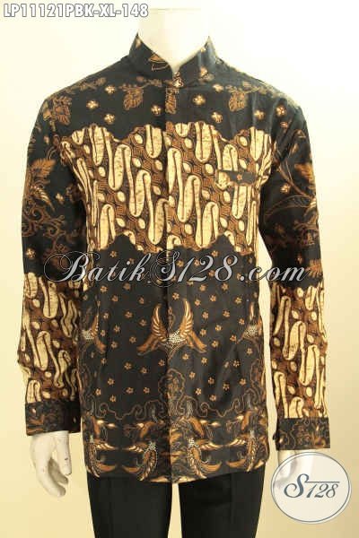 Batik Kemeja Kerah Shanghai Halus Motif Klasik, Pakaian Batik Model Koko Lengan Panjang Nan Berkelas Kwalitas Istimewa Proses Printing Cabut, Tampil Terlihat Berwibawa [LP11121PBK-XL]