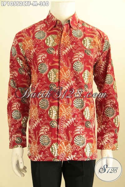 Batik Kemeja Keren Pria Lengan Panjang Warna Merah Motif Unik Kekinian Full Furing Proses Cap Tulis Hanya 360K [LP10552CTF-M]