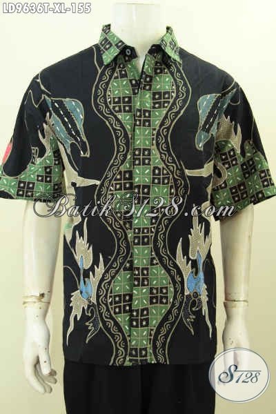Batik Kemeja Kerja Nan Modis, Pakaian Batik Solo Modern Kekinian Lengan Pendek Proses Tulis, Pria Dewasa Tampil Beda [LD9636T-XL]