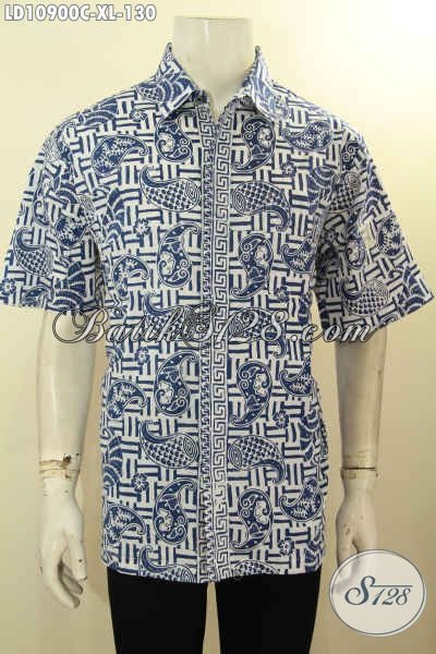Batik Kemeja Kerja Pria Lengan Pendek, Hem Batik Jawa Tengah Halus Proses Cap Motif Bagus, Size XL Spesial Untuk Pria Dewasa Karir Aktif [LD10900C-XL]