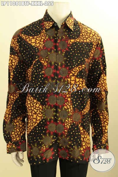 Batik Kemeja Lengan Panjang Big Size, Busana Batik L4 Motif Tren Masa Kini, Pakaian Batik Pria Gemuk Kwalitas Istimewa Proses Kombinasi Tulis, Pas Buat Acara Resmi [LP11081BTF-XXXL]