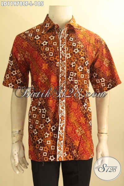 Batik Kemeja Lengan Pendek Buatan Solo Asli, Busana Batik Halus Kwalitas Istimewa Motif Terbaru Bahan Adem Proses Cap Tulis, Bisa Untuk Kerja Dan Acara Resmi Tampil Elegan [LD11978CT-L]