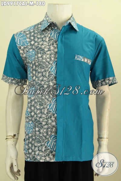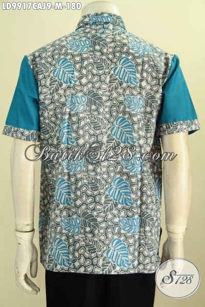 Batik Kemeja Lengan Pendek Kombinasi Kain Polos, Baju Batik Solo Keren Dan Trendy Untuk Tampil Gaya Dan Gaul Motif Bagus Asli Buatan Solo [LD9917CAJ-M]
