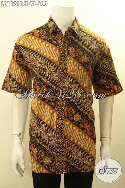 Batik Kemeja Lengan Pendek Motif Parang Bunga, Hem Batik Solo Proses Cap Tulis, Elegan Untuk Acara Resmi Maupun Kondangan [LD11210CT-XL]
